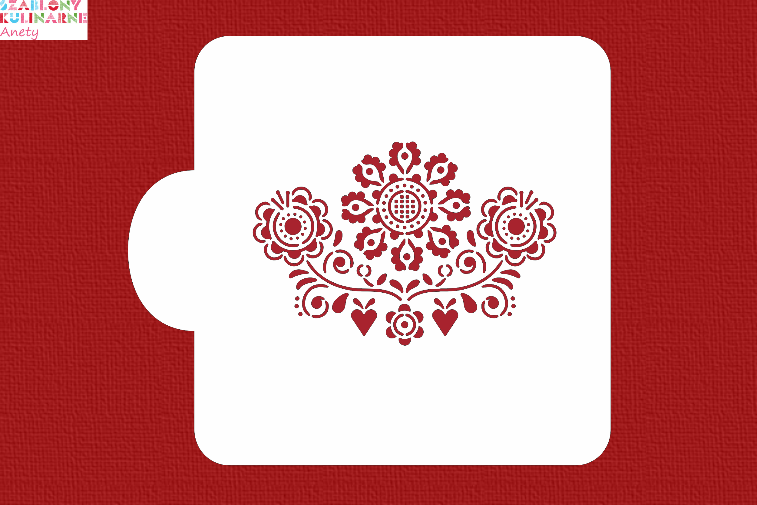 Wzór z haftowanym wzorem ludowym jest idealny do klimatycznych folkowych ciastek.