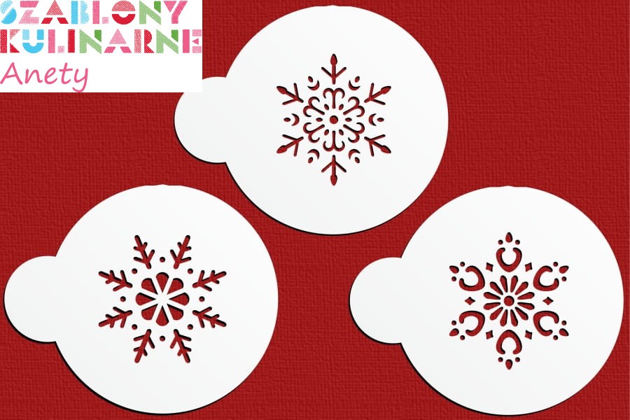 Szablony ze śnieżynkami sprawdzą się zarówno przy dekoracji pierniczków o tematyce zimowej, jak i bożonarodzeniowej. Delikatne, filigranowe, perfekcyjnie wycięte wzory pozwolą na wykonanie pięknych ozdób także na tortach.