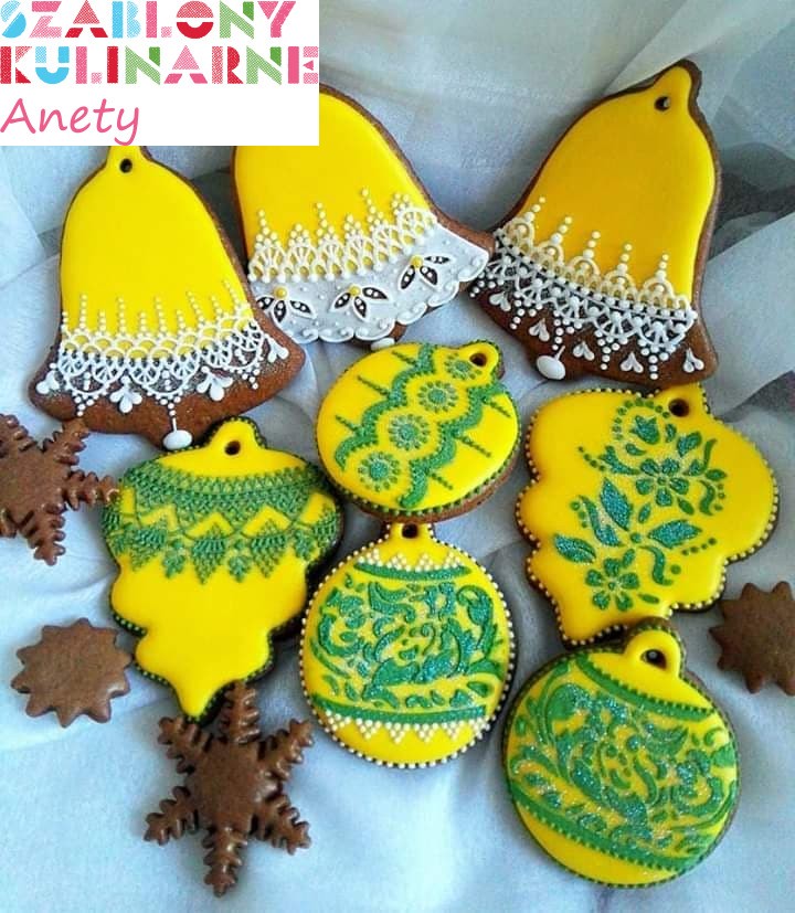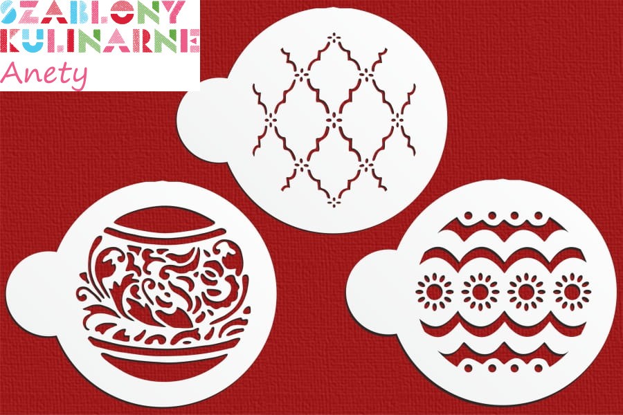 Przy użyciu szablonów możesz wykonać dekorację z lukru królewskiego, cukru pudru, kakao, czy też barwników spożywczych (np. w spray'u).