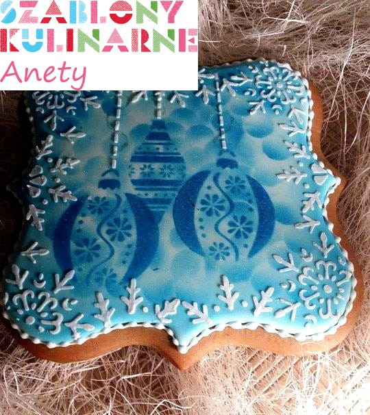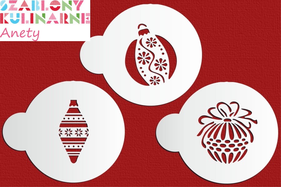 Zestawem szablonów z wzorami bombek ozdobisz świąteczne ciasteczka, pierniczki oraz muffinki. Najbardziej efektowną dekorację wykonasz przy użyciu połyskujących barwników.