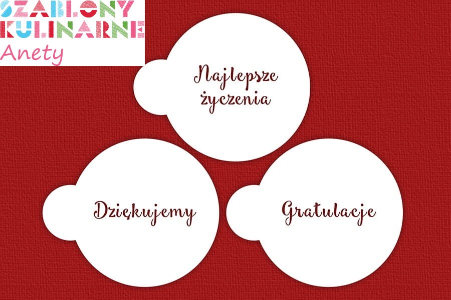 Napisy w zestawie: "Najlepsze życzenia", "Dziękujemy", "Gratulacje"