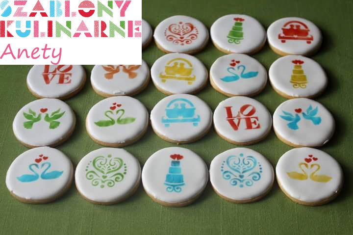 Szablony z zestawu ułatwią przygotowanie ciasteczek na słodki stół weselny lub na małe upominki dla gości.