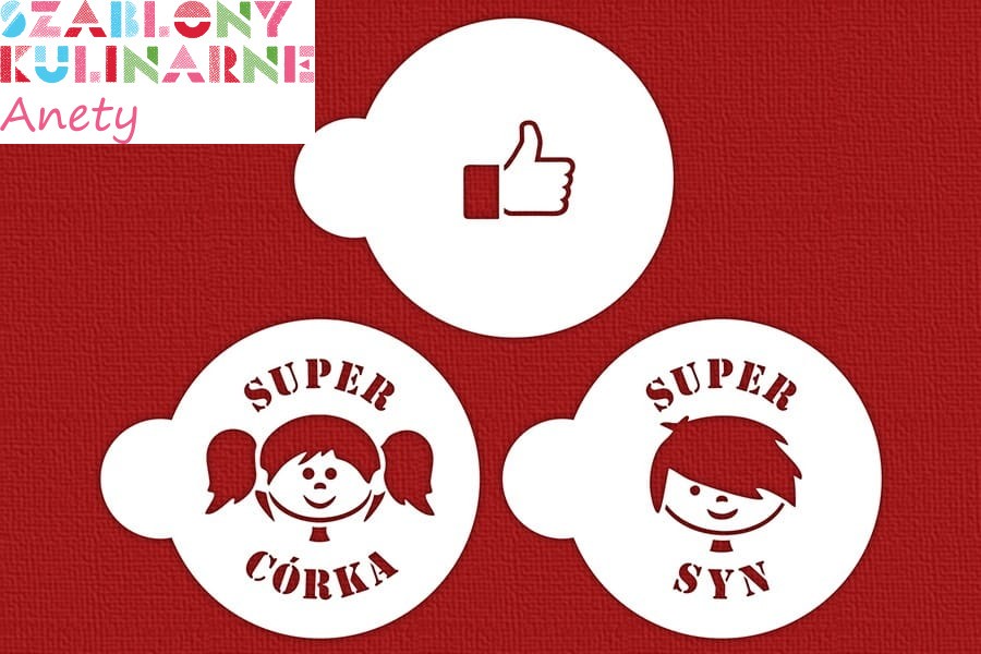 Wzory w zestawie: super córka, super syn, znaczek z Facebooka "lubię to"