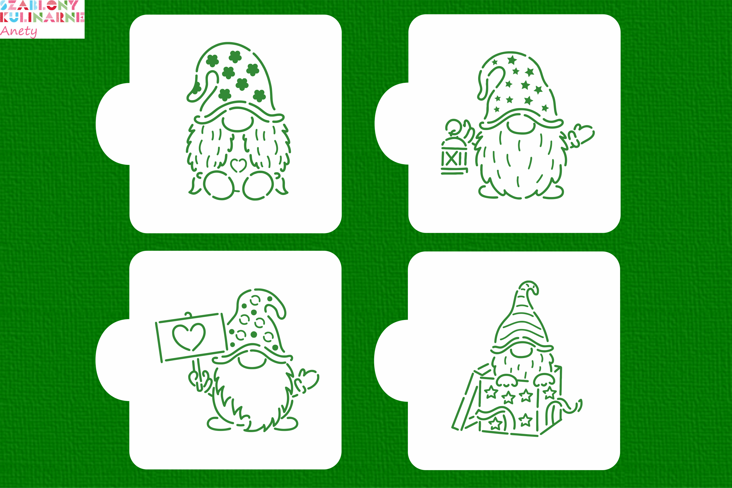 SZABLONY Zestaw kolorowanek / konturów - skrzatów - 4 sztuki